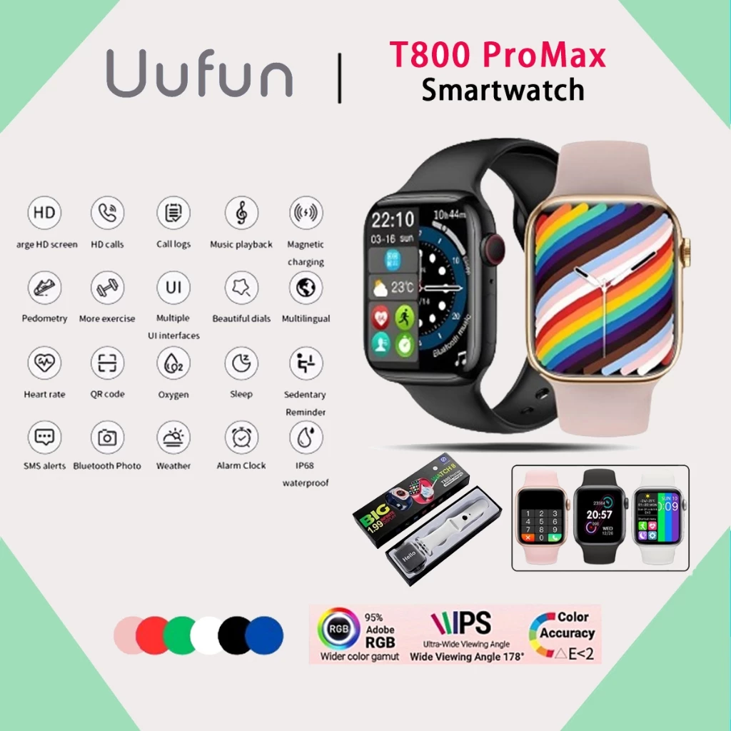 Dilengkapi layar besar dan fitur premium, UUFUN T800 Pro Max menawarkan pengalaman smartwatch yang lengkap. Fitur seperti panggilan Bluetooth, pelacakan kesehatan, dan daya tahan baterai tinggi menjadikannya pilihan yang sangat menarik.